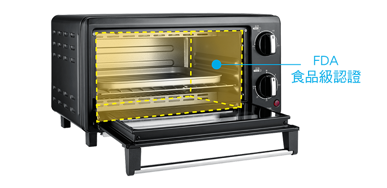 雙層強化玻璃門設計,可保持烤箱內溫度,減緩熱能散失,讓箱內溫度不外洩。